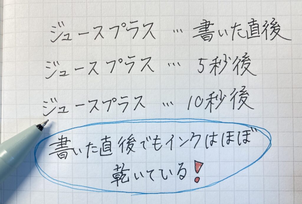 そんな中、ジュースプラスのインクは、とても乾きやすいです。