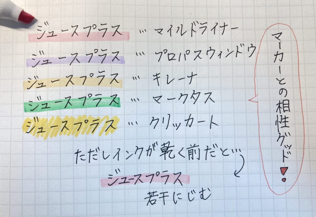 これ、本当にゲルインキボールペン?、と思うほどマーカーとの相性はバッチリ。